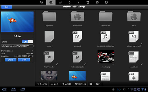 GoAruna Files for Tablets is a specially made combination of a powerful file manager and cloud file storage solution, made just for your Android tablet.